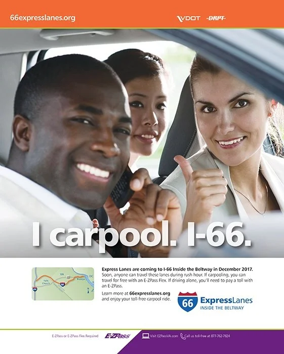 Clearing the hurdle of introducing a whole new way of traveling along the busy I-66 corridor—including complex new lane usage rules and requirements—as well as educating the public about the positive impact of the new Express Lanes meant that the Sensis team had to create two distinct campaigns with overlapping reach to a broad and diverse public audience. And, the tactics had to ensure that the benefits of the new Express Lanes as well as how to use them gained widespread coverage with high density saturation.